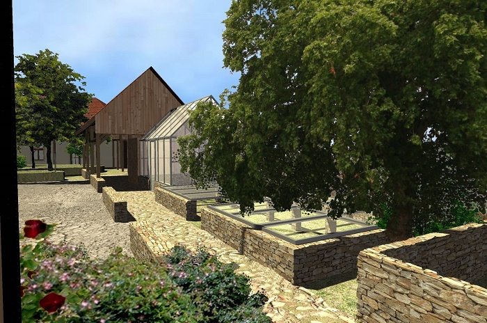 Návrh drobných hospodářských staveb k rekonstruovanému stavení na Kolínsku - zpracovatelna zeleniny, pařeník, skleník, kolna pro traktor, kamenné cesty a zídky členící prostor. Návrh byl součástí celkového řešení hospodářství....